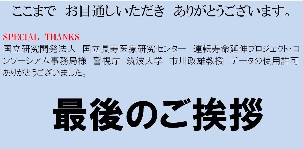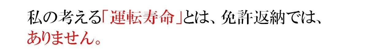 - 「運転寿命」という公道の「運転を休む」ことの重要性を 記していきたいと思います。