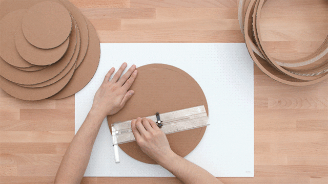 片手で素材を押さえ、もう片方の手でカッターを回転させる。片手操作で楽々、きれいな円が切り取れます!