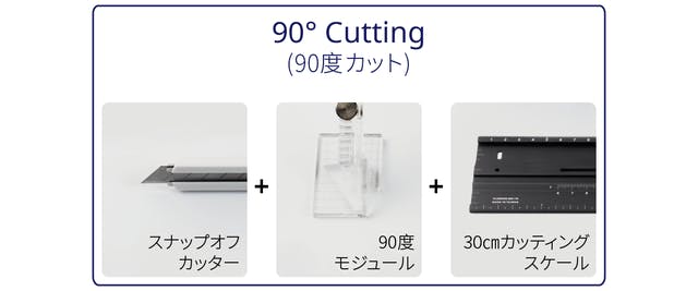 ● 厚い素材も垂直を保ったままカットできる。90度モジュール