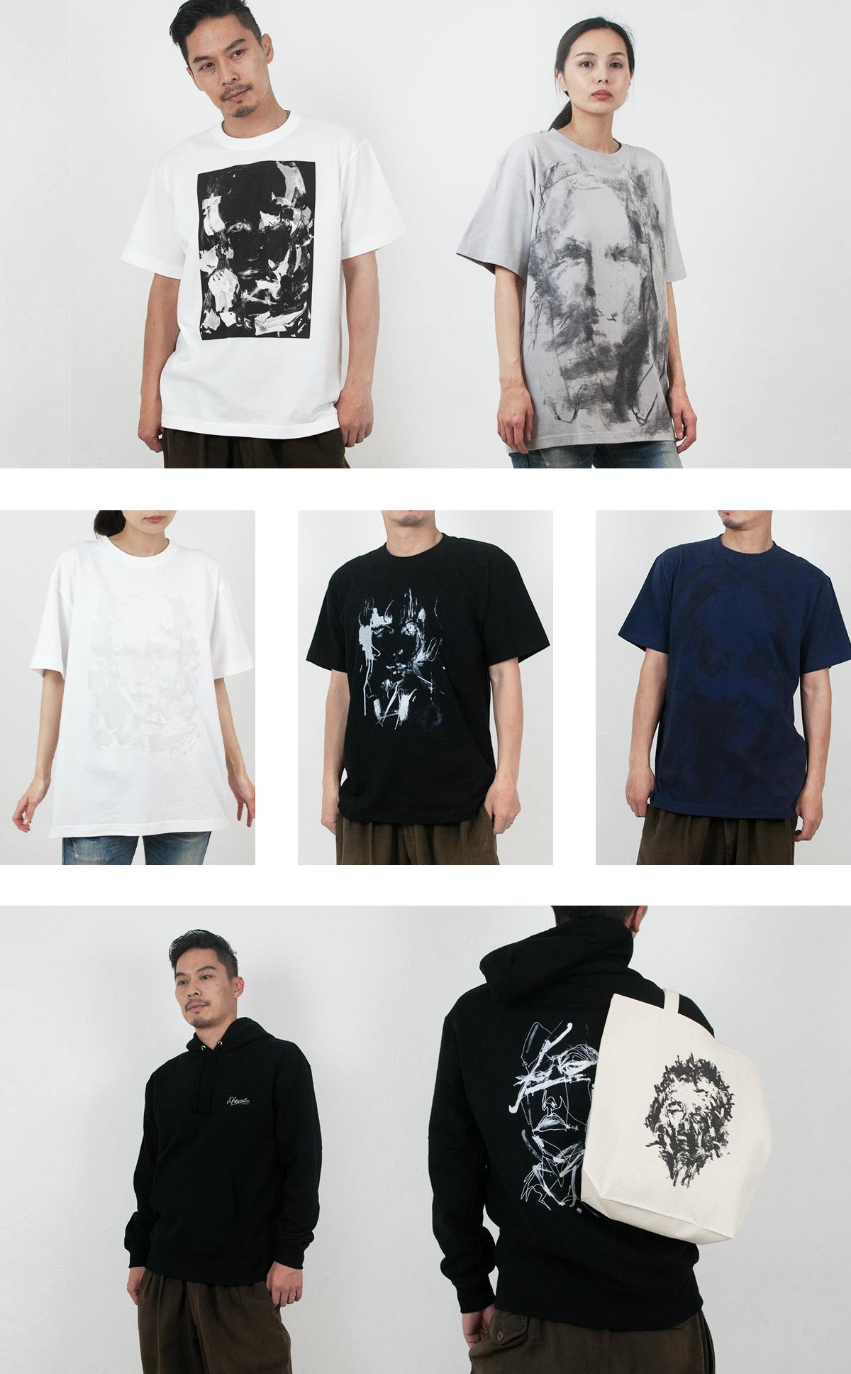 チャコールで描かれた作品をオーバープリントしたTシャツは、まるでTシャツにそのまま描かれているかのような仕上がりになりました。