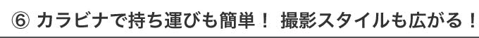 持ち運びの際にベルトやバックパックに掛けるもよし! さらに撮影時に木に引っ掛けて撮影するもよし、フェンスなどにも取り付け可能。