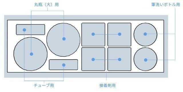 塗料を収納する革新的な方法!コンパクトなサイズに多くの塗料が収納可能です。※ 特許出願中