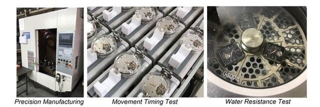 最終的な品質チェックとしてエンジニアが全ての時計を厳格に検査します。防水性、メッキの状態確認、ムーブメントの誤差試験、製品出荷前運転試験など時計が正常に機能することを保証するために徹底的に検査します。