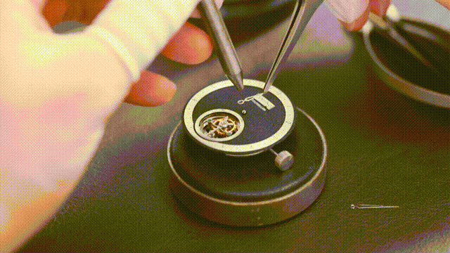 凄腕の時計職人が一つ一つ丁寧に組み立てています。微細な精密パーツを組み立てる作業は清潔な作業ルームで行っています。