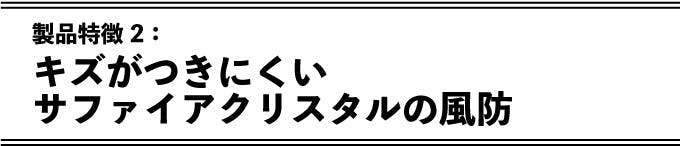 風防はダイヤモンドに次いで地球上で2番目に硬いサファイアクリスタルで製作されています。高級時計に使用される特殊素材で一般的な使用でキズがつくことはほぼありません。