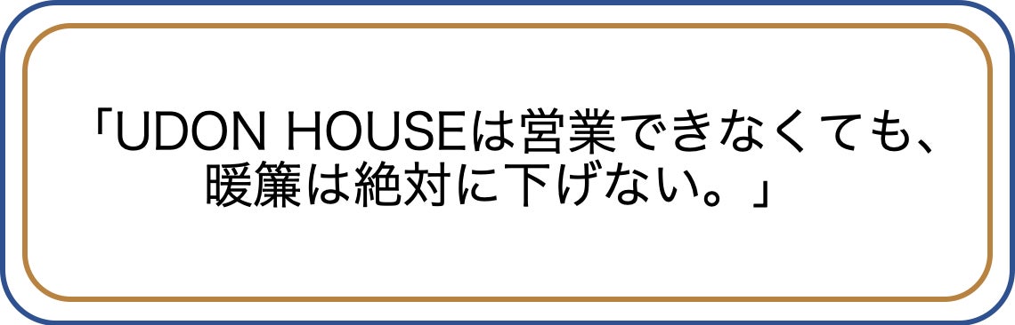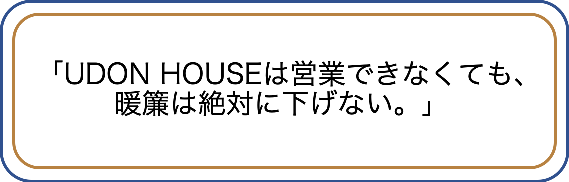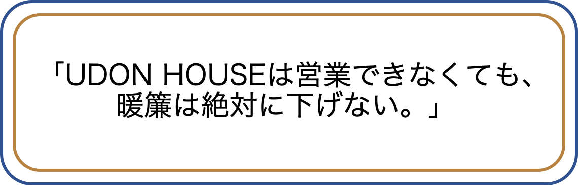 いつまで続くかわからない非常事態。このまま営業ができなければ、UDON HOUSEを継続していくことができません。状況が落ち着いたとしても観光産業、特にインバンドのお客様が戻ってくるのには1〜2年は最低でもかかるだろう。もう、UDON HOUSEをやめなくてはいけないのか?いろいろ考えた結果、行き着いたのはこの想いでした。