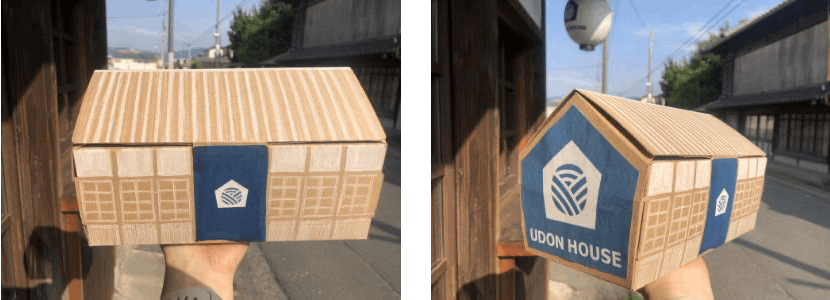 『うどんのおうち』はUDON HOUSEの建物型をしたかわいらしいBOXに入って届きます。