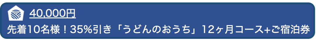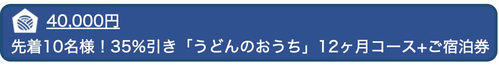 『うどんのおうち』はうどんのサブスクリプションモデルで、ご注文月から6ヶ月連続(計6回)届く仕組みになっています。通常6ヶ月コースが基本となりますが、今回は特別に新商品発売記念として1度だけお試しいただけるプランもご用意しました。合わせて、UDON HOUSEの宿泊券付きの12ヶ月コースも35%割引でご用意しています。皆さんのライフスタイルや好みに応じて、お好きなリターンをお選びください。