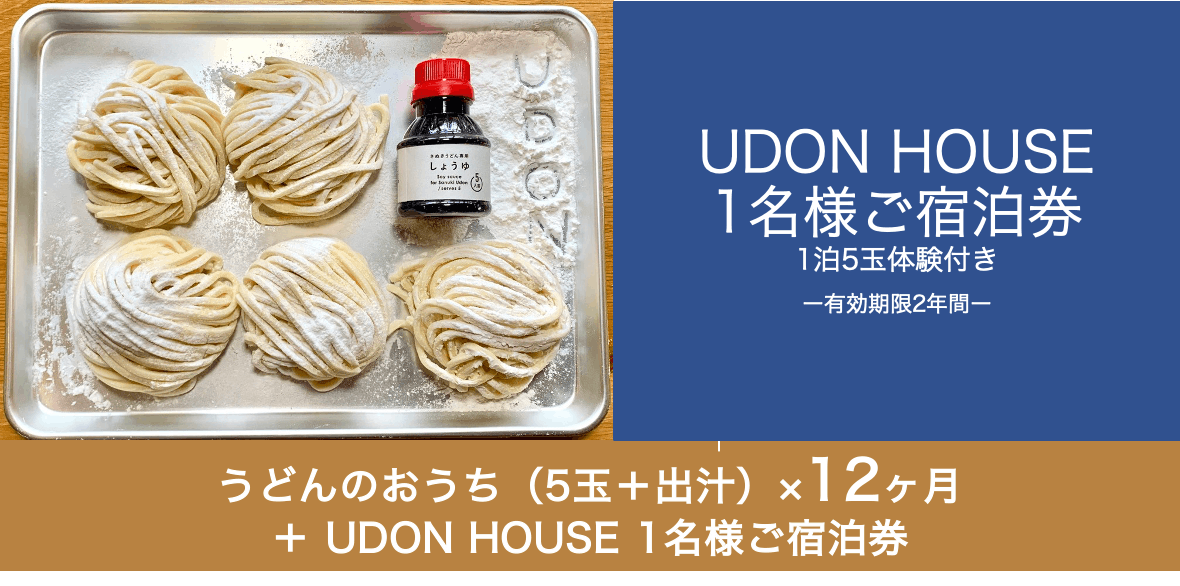 ※1口につき1名様をご招待とさせて頂きます。UDON HOUSEは現在1日1組様限定での営業となりますので、予めご理解の上、ご宿泊日についてはご予約時に空いている日程でご案内致します。