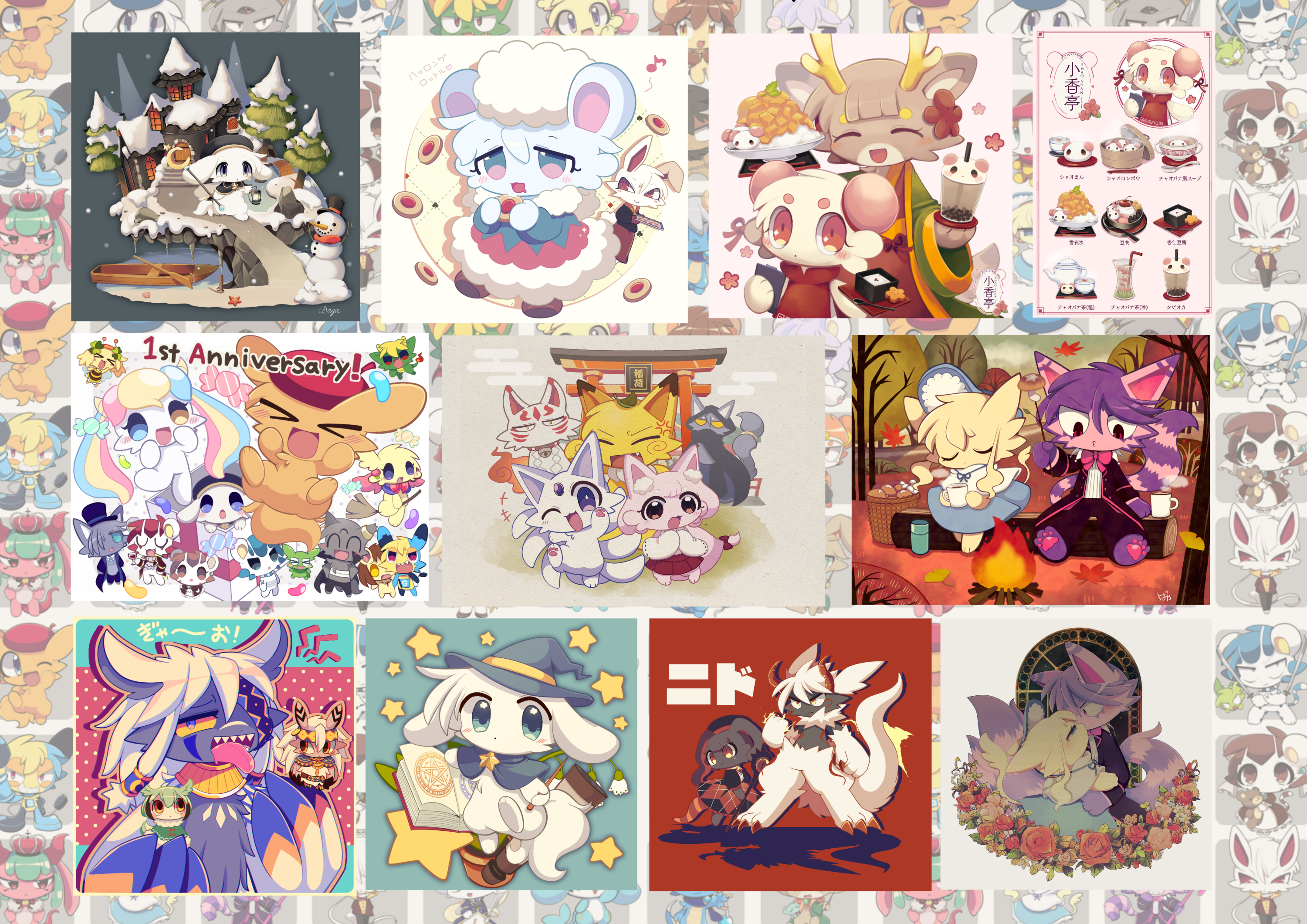 過去に株式会社GREE様モンプラのキャラクターデザイン、個人の方からはイラストやアニメーションのご依頼などを受けております。