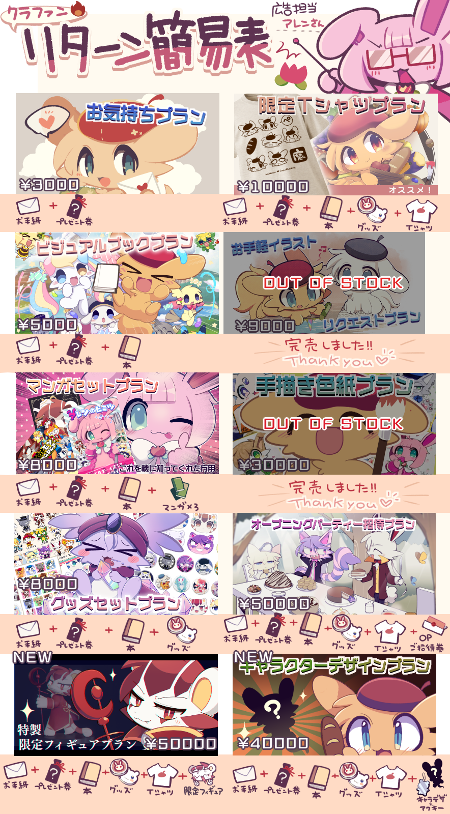 プロジェクト終了次第改めてビジュアルブックに記載させていただくペンネームとこちらのアクリルフィギュアご希望の絵柄の番号をご連絡させていただきます!(過去頒布したミニアクキーにも変更可)