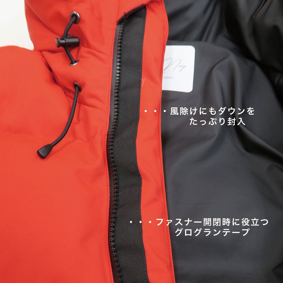 ファスナー内側の風除け部分にもたっぷりとダウンを充填しています。