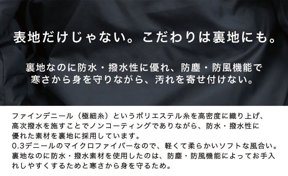 素材 表地:H2OFF®︎DR(ノンコーティング撥水・防水・透湿素材)ナイロン100%