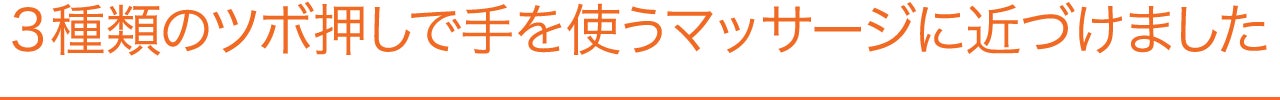 指先でツボをしっかり押す、指の腹で押さえる、手のひらで広く押さえる3種類の刺激をデザインしています。用途に合わせて刺激を使い分けることができます。