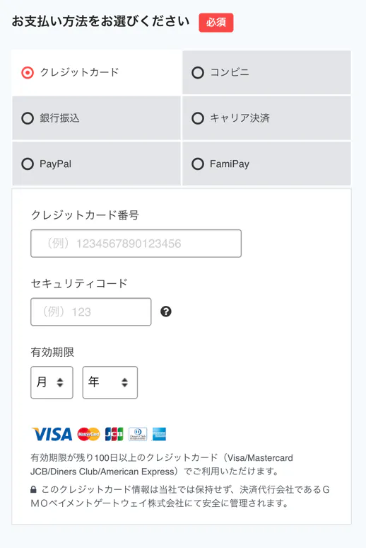 クレジットカード払い(Visa/Mastercard/JCB/Diners Club/American Express)、コンビニ払い(全国の主要コンビニエンスストア)、銀行振込、auかんたん決済、ソフトバンクまとめて支払い・ワイモバイルまとめて支払い、ドコモ払い、PayPalをご利用いただけます。