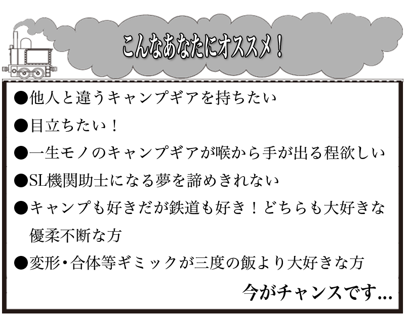 このSL型薪ストーブ「グレン」基本設計は終わっていますが、より鉄道ファン、キャンプファンの皆様に楽しんで頂く為、支援者様の意見を貰い、可能な限り製品作りに取り入れて行きたいと思います。