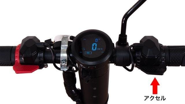 ハンドルに付いているアクセルを押して、ちょっとキックボードを漕ぎ出せば前に進みます。