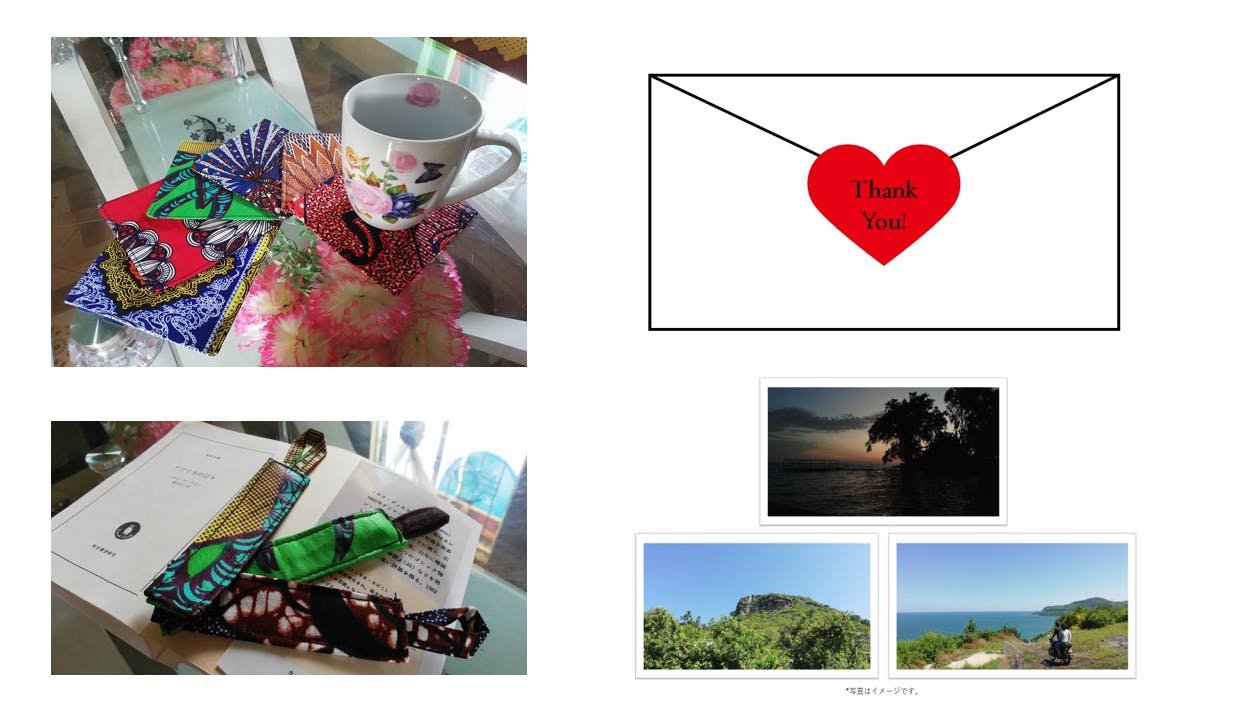 ・ムファンガノ島の仕立て屋さんに頼んで作ってもらったアフリカ布のしおりです!