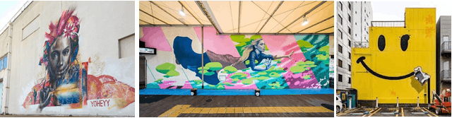 (※写真は神戸でPOW!WOW!JAPAN開催時制作したミューラル。左からYoheyy, Whole9, Slick)