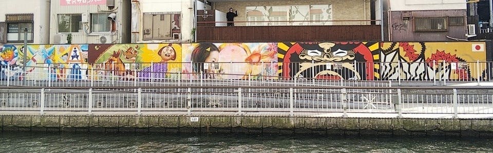 ・2019年大阪道頓堀の河川管理通路にて、180(ワンエイティー)というアート系ベンチャー企業が南海電鉄と組んでウォールシェアという仕組みを実験的に導入しミューラルアートを多数描いています。今現在もその数を増やしています。