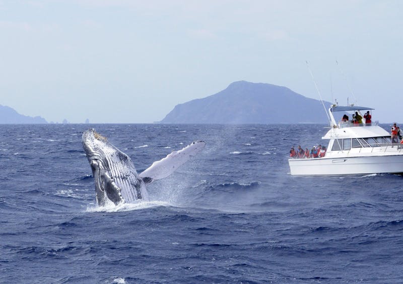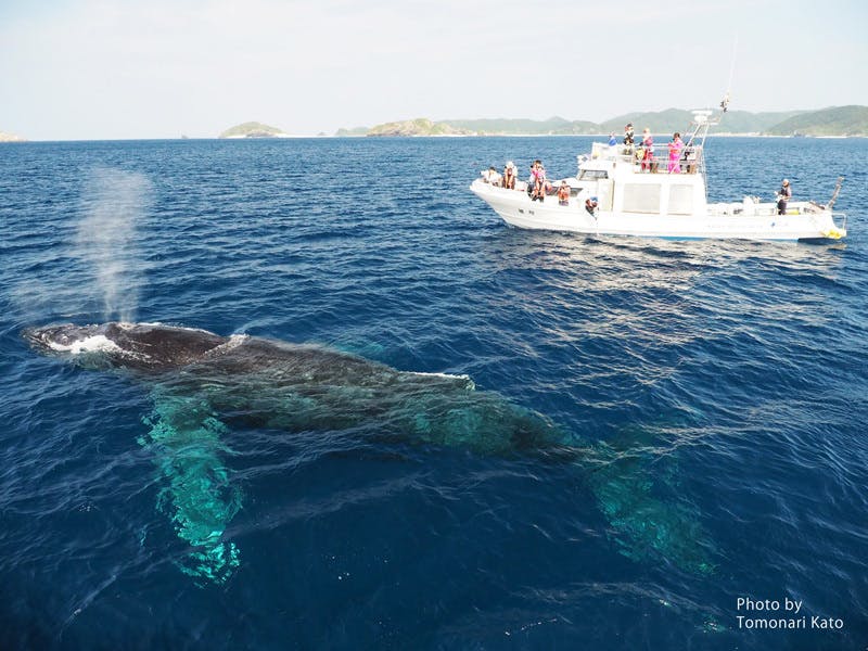 船上から巨大なクジラの姿を間近に見るホエールウォッチングでは、全身の3分の2を水面から空中に突き出しジャンプする若いクジラのブリーチングや、仔クジラに寄り添う親子クジラの微笑ましい姿などを見ることができ、人々に大きな感動を与えます。