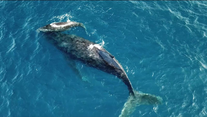 ・座間味の海で撮影されたプロジェクトオリジナルの親子クジラPC壁紙1点、画像サイズ:2560×1600