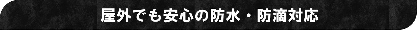 防水・防滴規格「IP44」に適応しています。これはあらゆる方向から水滴をかけても問題ないことを意味していますが、完全防水ではありませんので水没させないでください。水没が原因で故障した場合は保証対象外となり、有償でのサポート対応になる場合がございます。