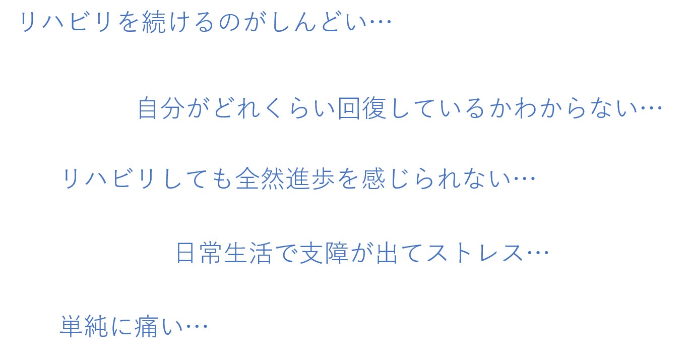 ご存知かと思いますが、リハビリには長い期間がかかり、とてもつらい孤独との闘いです。私自身も昔骨折したことがあり、リハビリの治療が思うようにいかず、部活でおいていかれる自分が辛くて泣いていた日々があります。