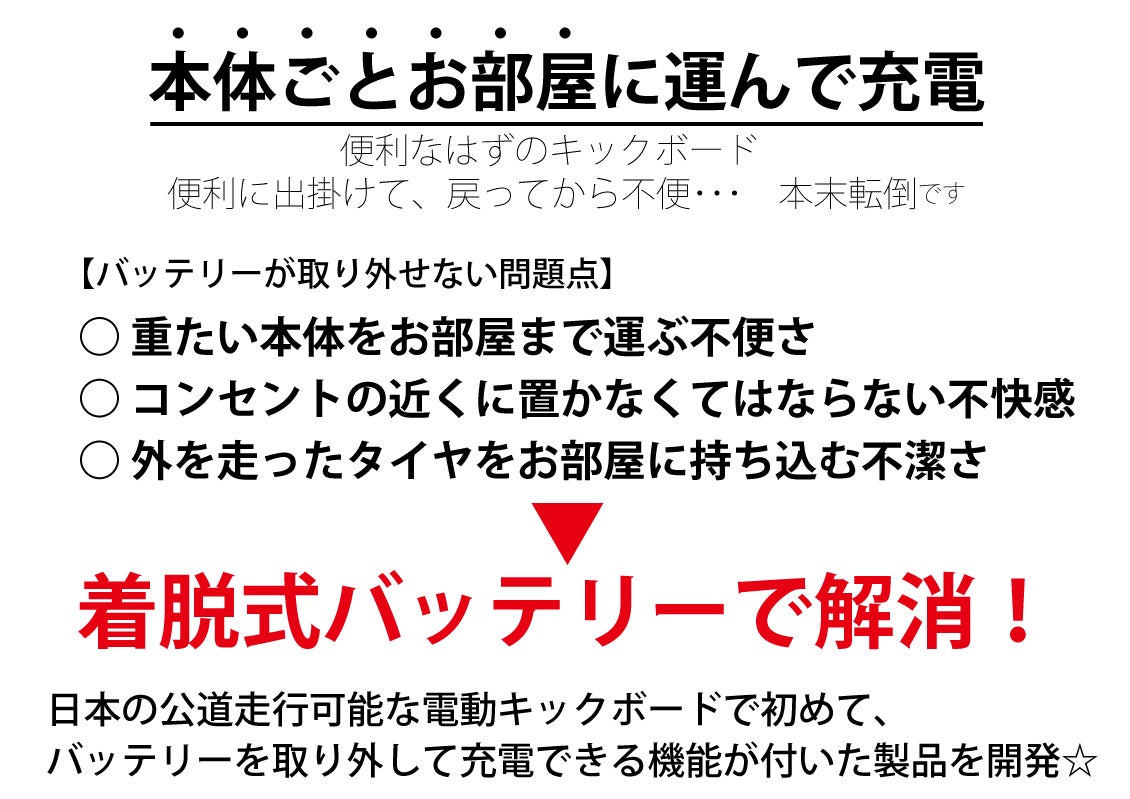 このクラスの電動キックボードでは最大サイズのタイヤを装着しました。