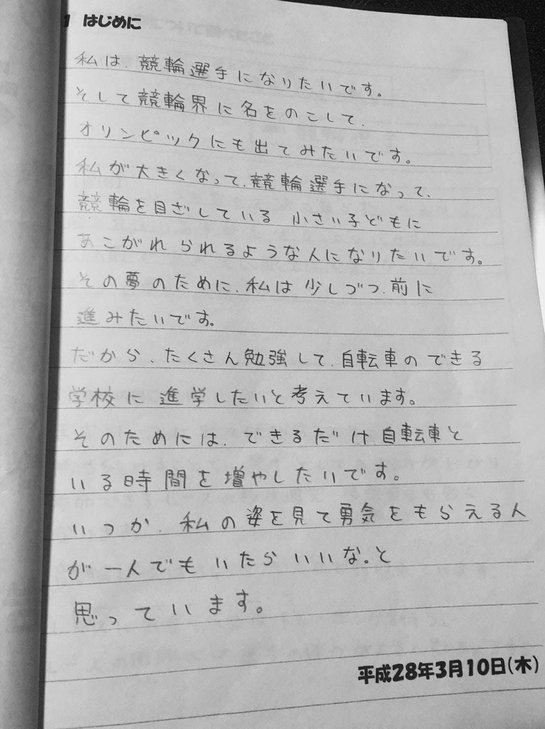 そしてなにより、私の夢を心から応援してくれている家族や部活のコーチ、私の夢を支えてくれ、応援してくれる全ての人々にも、絶対に競輪選手になって活躍して恩返ししたいと思っています。