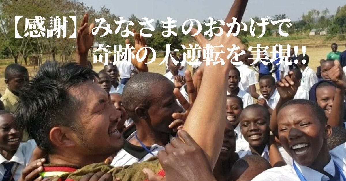 2020/03/01 12:31みんなと一緒に起こした大逆転のドラマこれが嬉しい!本当に嬉しい!!終了の数日前まで、目標の45%。全く支援をいただけない日が何日も続きました。最後のラスト1週間で、45%から118%までご支援いただいた方は、65名から160名まで猛烈な追い上げをしていただけました。苦しい状況からの奇跡の大逆転!まさに、おしえるがっこうに参加してくださる方々の人生に喜びの大逆転をたくさん生み出していきたいのでほんとうに嬉しいです!お忙しい中、大切なお時間、お金、思いを使ってご支援いただけたことに心から感謝しております!!『おしえるがっこう』にとって最高のスタート!!ありがとうございました^_^!!たくさんの人たちの思いと共に頑張れる幸せ自分一人ではない。多くの人たちの思いと共にこのおしえるがっこうをスタートできることが本当に幸せです!高校教員を退職する時、活動名を全校生徒と先生方に決めていただいたことも、2度目のタンザニアへの挑戦の時も、クラウドファンディングで応援してくださる方がいてくれたおかげで、度重なる苦しい状況も乗り越えることができました。おしえるがっこうは、世の中にはない全く新しい教育スタイルです。予想外の困難や悩みは必ず訪れると思います。しかし、応援してくださる方たちの思いを力に変えてどんな時も、前を向いて、楽しみながら前進していきます!!いよいよ ここからがスタート!!現在、みなさんに力を貸していただきながら開校に向けて準備を進めております。コロナウイルスで異常事態になりおしえるがっこうのスタートも乗り越えなければならないことはたくさん訪れると思います。しかし、そんな中でこそ『楽しく生きる』人間を一人でもこの場所から育っていけるよう頑張っていきます。子どもたちが、早く大人になりたいと思えるように!そのためにも、大人たちが生き生きと人生を歩んでいけるようにまず私自身が、先頭を切って姿で示し切って参ります! もっと見る