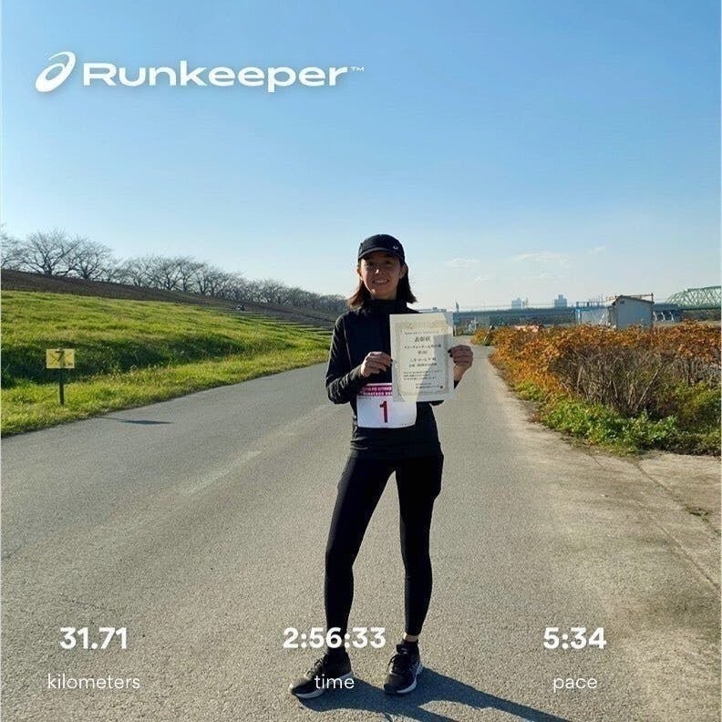 最初はどうしても1kmを6分~6分30秒かけて走っていましたがやっと10月頃から5分30~50秒で走れるようになり、12月に30kmを5分34秒のペースで完走できました。