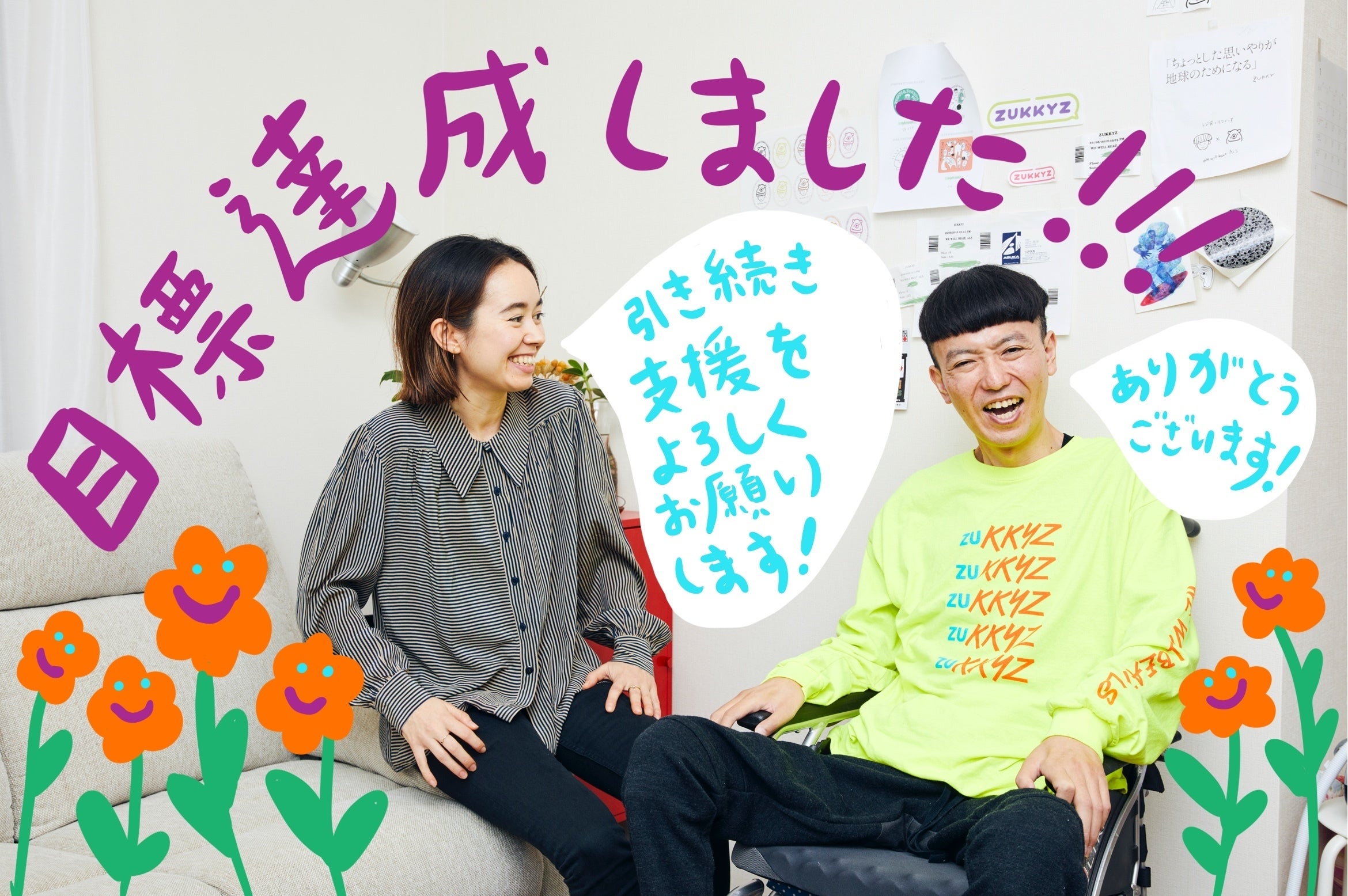 ズッキーに「ZUKKYZ」を立ち上げた理由を聞くと、「ALSを治すと言うのは今は無謀かもしれない、もしかして10年後は普通に治る病気になっているかもしれないけど、今はまだ治らない。僕はALSを治すのがゴールではなくて、それは途中経過であって、ゴールはALSが治った後の未来にあると思うんだ。」と話してくれました。
