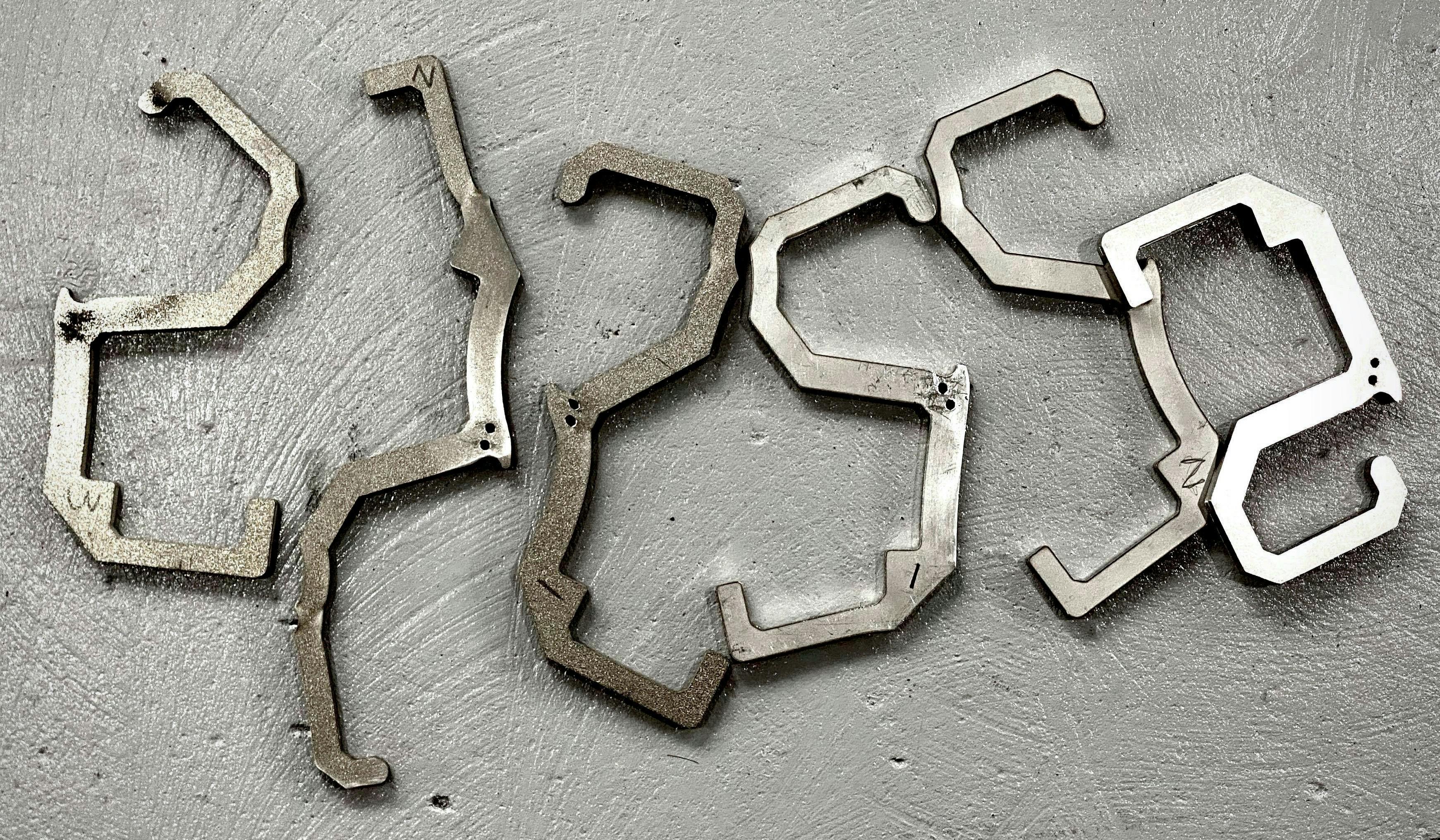 強度的にどこまでの物が必要なのか?様々な金属でプロトタイプを作り、引っ張り強度を計測するテスターにかけてテスト。