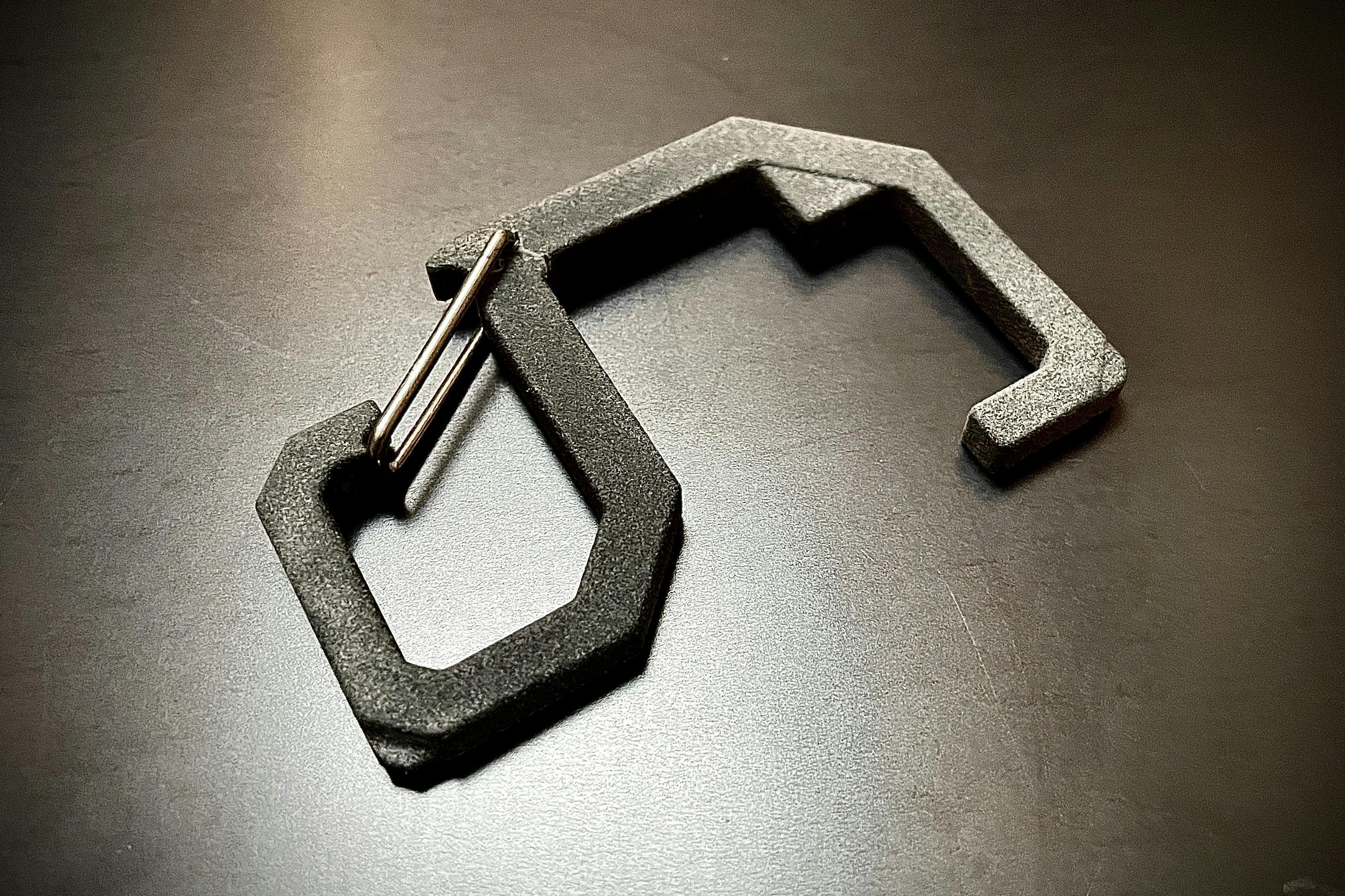 そこで、カラビナとS字フックを掛け合わせて、どこにでもバッグを吊り下げられて、しかもタッチレスツールとしても使える見た目もバッチリで多機能な物を作れないか?と思いついたのです。