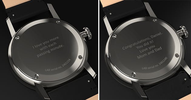 LABの魅力は、あなたの好きな言葉やメッセージが裏面に刻印できることです。