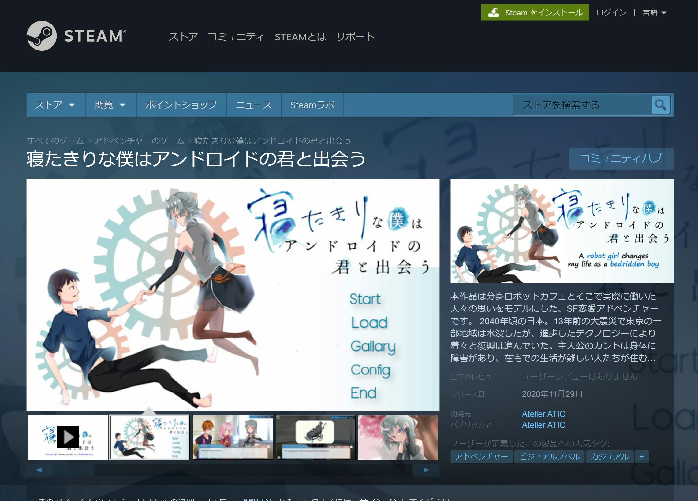 それに合わせて、本作品『寝たきりな僕はアンドロイドの君と出会う』を世界中の方にもプレイしていただき、寝たきりでも可能性を感じていただきたいです。