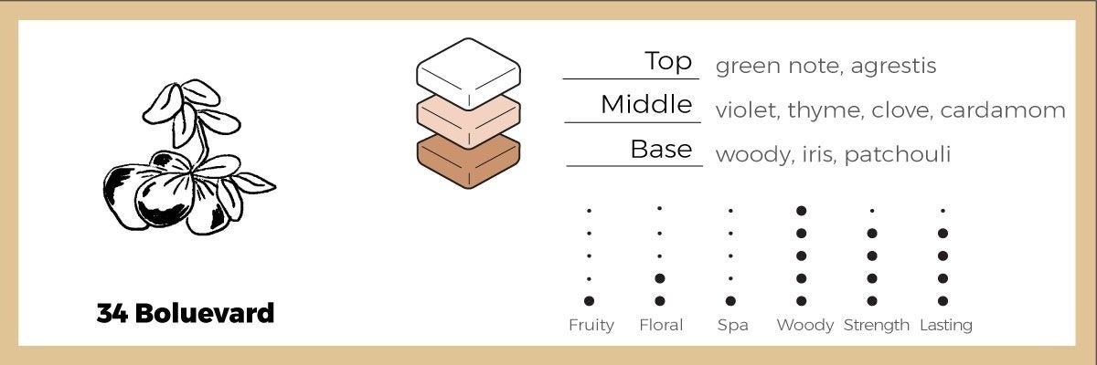 甘く華やかなミモザの香りと、新鮮なカルダモンのスパイシーな香りをブレンドしました。官能的で自由な雰囲気の濃厚な花の香りとクリーミーでパウダリーな残り香が溌剌としたトップ、ミドルノートのバランスを保ちます。(おすすめの場所:寝室、パウダールーム、ドレスルーム)