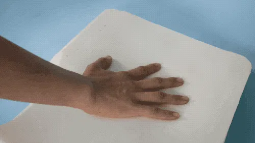 頚椎枕の最も重要な機能は、まさに復元力です。ご覧のように、強い圧迫にもすばやく元の形に戻ることができます。 寝返りはもちろん、どんな姿勢にも、均一な形と高さを提供する素材、それが「マイクロファイバー綿」です。
