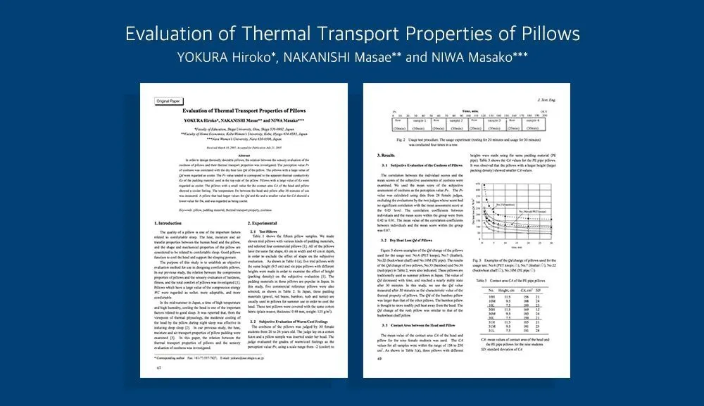 枕の詰め物関連の実験の論文:蕎麦を使用すると、睡眠時の体温を下げてくれるという内容