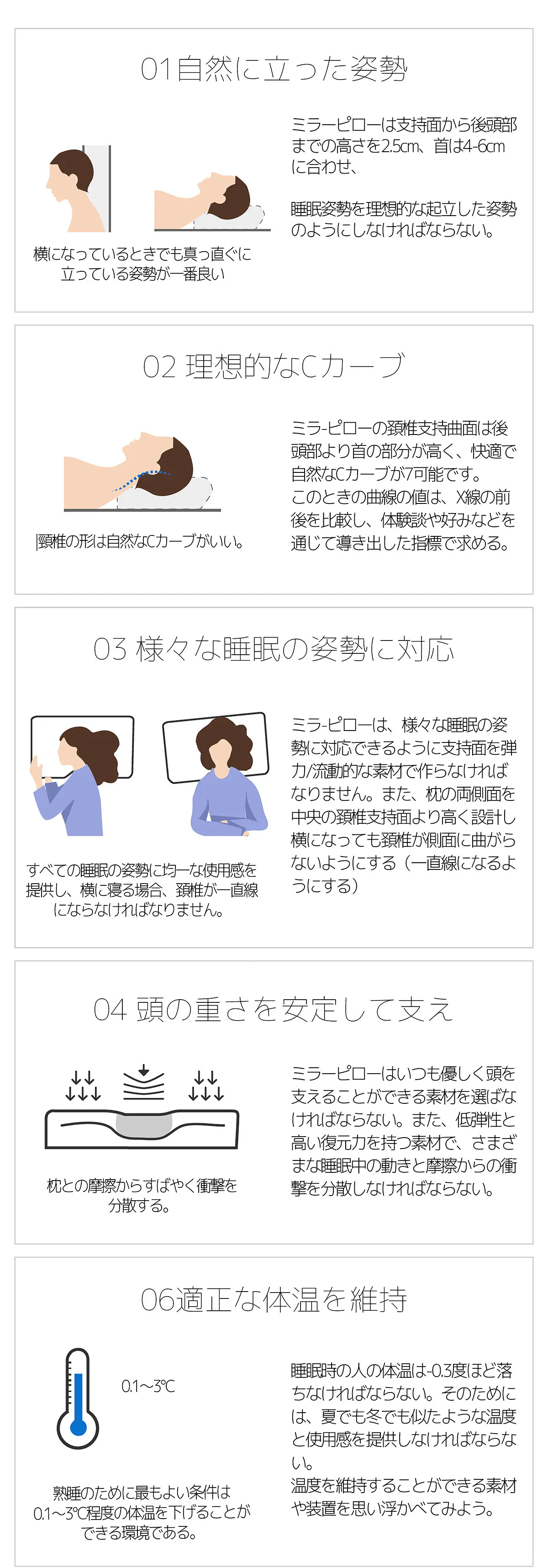 理想的な睡眠と姿勢の条件を整理し、それに合った枕のミッションを定義した内容です。