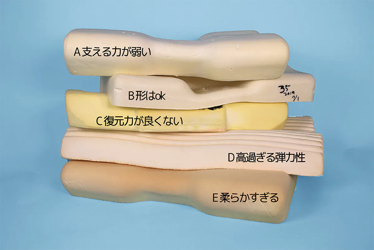 だから頭の重さと衝撃を分散して、頚椎に無理を与えない素材、長い間、均一な形を維持することができる素材を見つけなければなりませんでした。