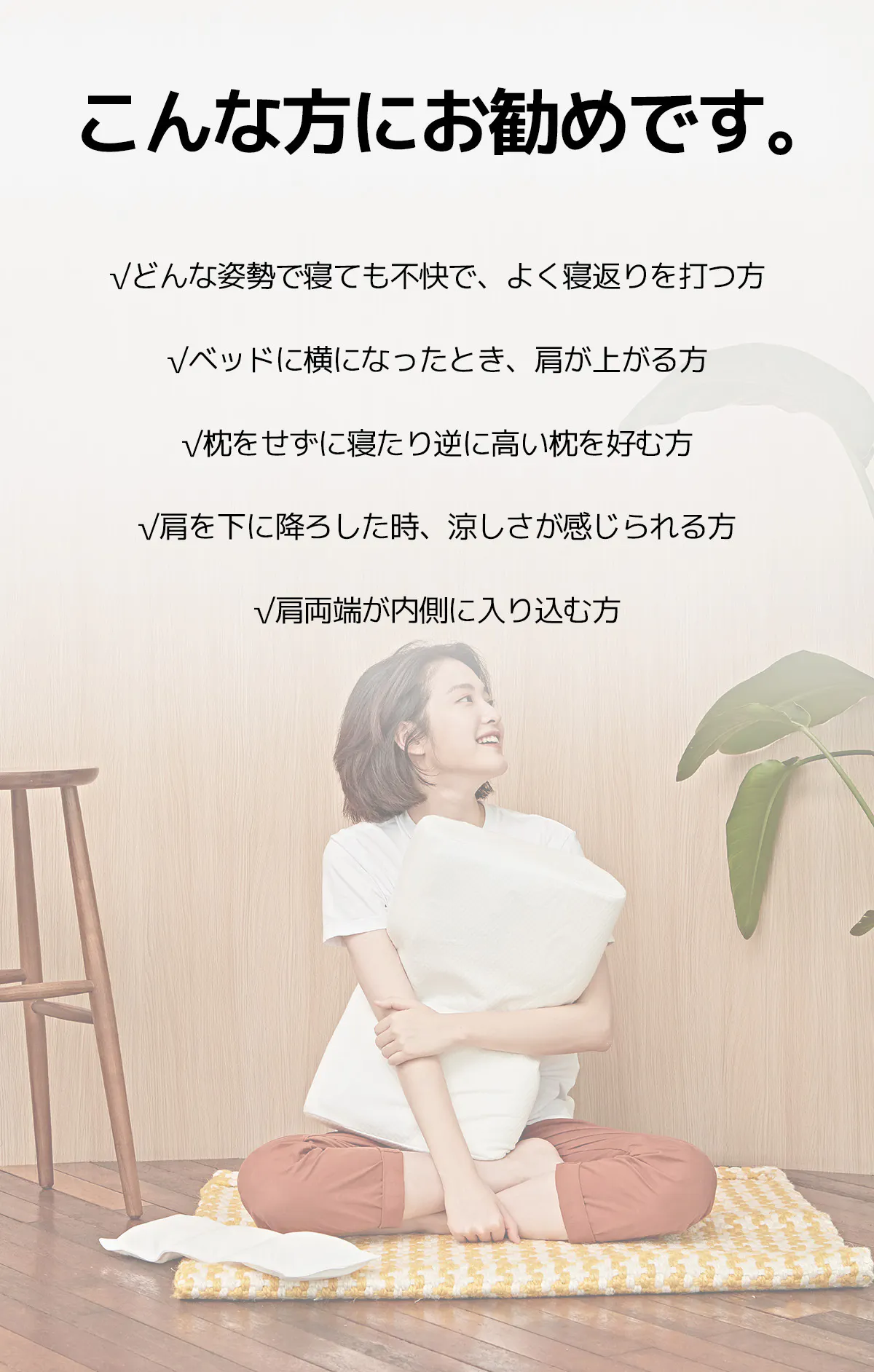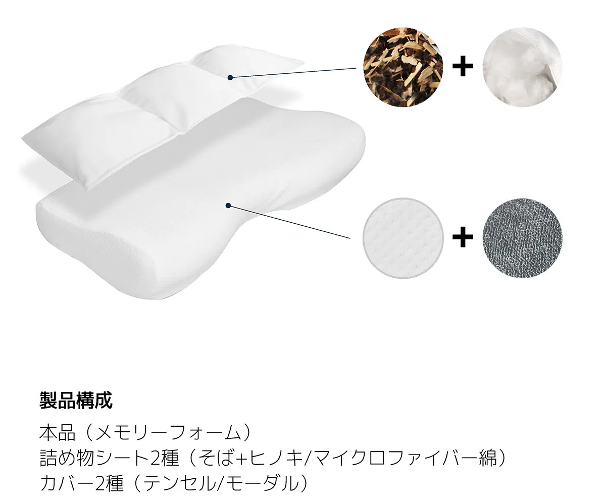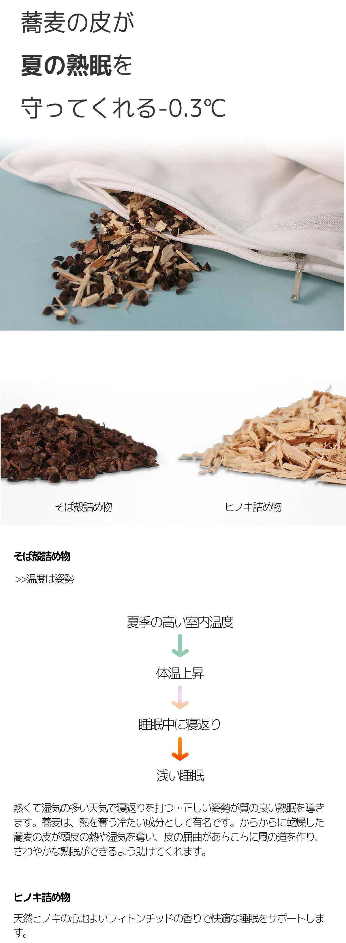 蕎麦の皮の大きさが小さいだけでなく、ヒノキチップもできる限り小さく粉砕したので、まったく硬くありません。 また、本体が衝撃を吸収する高密度メモリーフォームで構成されており、そばの涼しさとメモリフォームの快適さを同時に感じることができます。