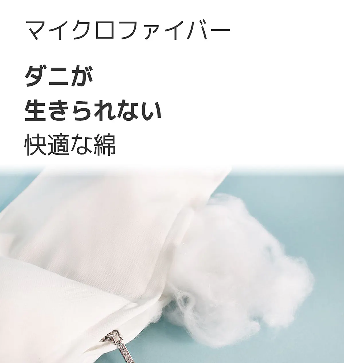 マイクロファイバー綿は名前のように「非常に小さな繊維」で構成されています。髪の毛の太さの1/100にすぎず、またダニの胴体の太さよりもはるかに薄く製織された繊維だからバクテリアや害虫が寄生しにくいのが特徴です。