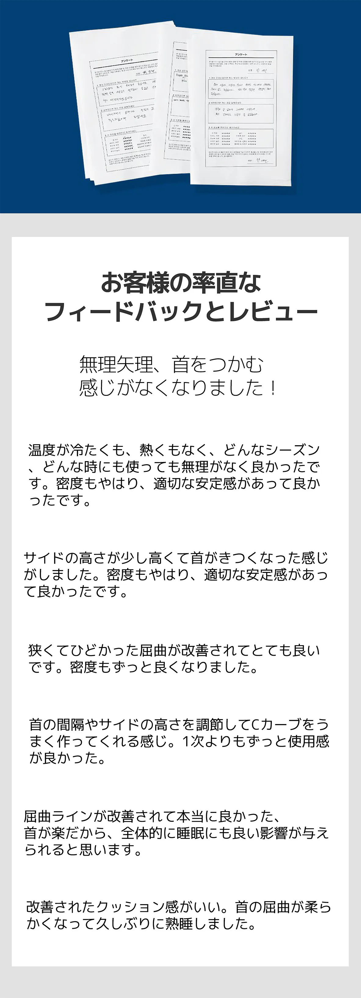 しかし、これにとどまらず、使用して頂いたすべての方の声と率直なフィードバックを受け、より完璧な枕を作るために5ヶ月の時間を投資しました。