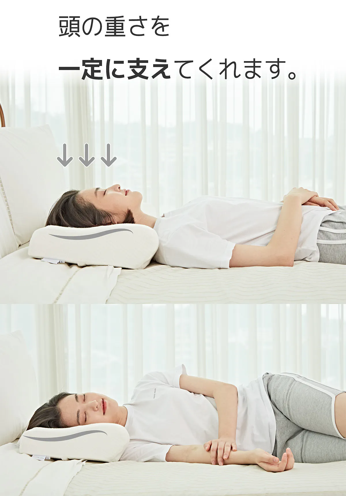 これは、高い密度と低い弾力性でいくら強い衝撃も95%以上吸収します。枕の素材として使用されたメモリフォームは寝返りの頻度や程度にかかわらず、一定の使用感を提供するだけでなく、いつでも優しく頭を支えます。