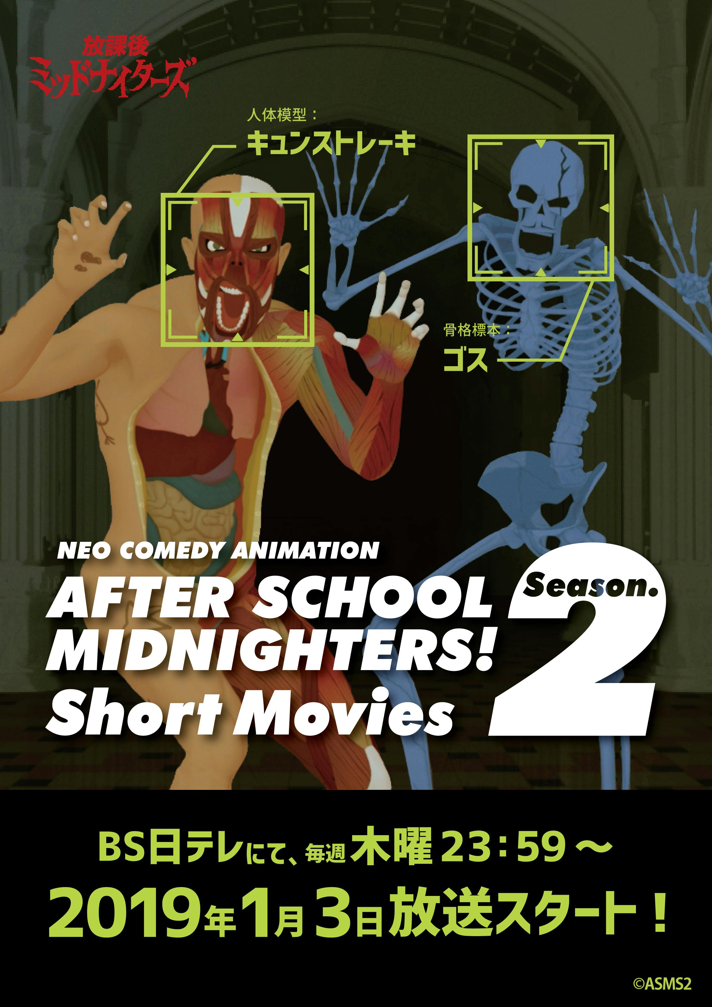 2019/01/17 12:10みなさま遅くなりましたが、あけましておめでとうございます!今年も「放課後ミッドナイターズ」をどうぞよろしくお願いいたします。さて、ご存知の方もいらっしゃるかもしれませんが、「放課後ミッドナイターズショートムービーズ 」がなんと!BS日テレで毎週木曜23:59〜全国放送中です!!!!■番組紹介ページ http://www.bs4.jp/guide/cinema/afterschool_midnighters/これまでは地域限定の放送が多かったので、よーーーーやく、全国の皆さま同時にご覧いただけることになりました!日付が変わる直前の1分間!1日の終わりに放課後を見て笑って、ぐっすり眠りましょwそして、ぜひTwitterなどで「#放課後ミッドナイターズ」をつけて感想を投稿していただけると嬉しいです!(エゴサしまくると噂のキュン様が速攻反応してくれるかもしれませんよw)それでは、今夜の放送もどうぞお楽しみに!! ーーーーーーーーーーーー■公式Youtubeチャンネル https://www.youtube.com/channel/UCBiLLivALrfcoce0D0CpCFw◼︎キュン様 公式Twitter https://twitter.com/kyunsama_ASM◼︎ゴス 公式Twitter https://twitter.com/goth_ASMーーーーーーーーーーーー もっと見る