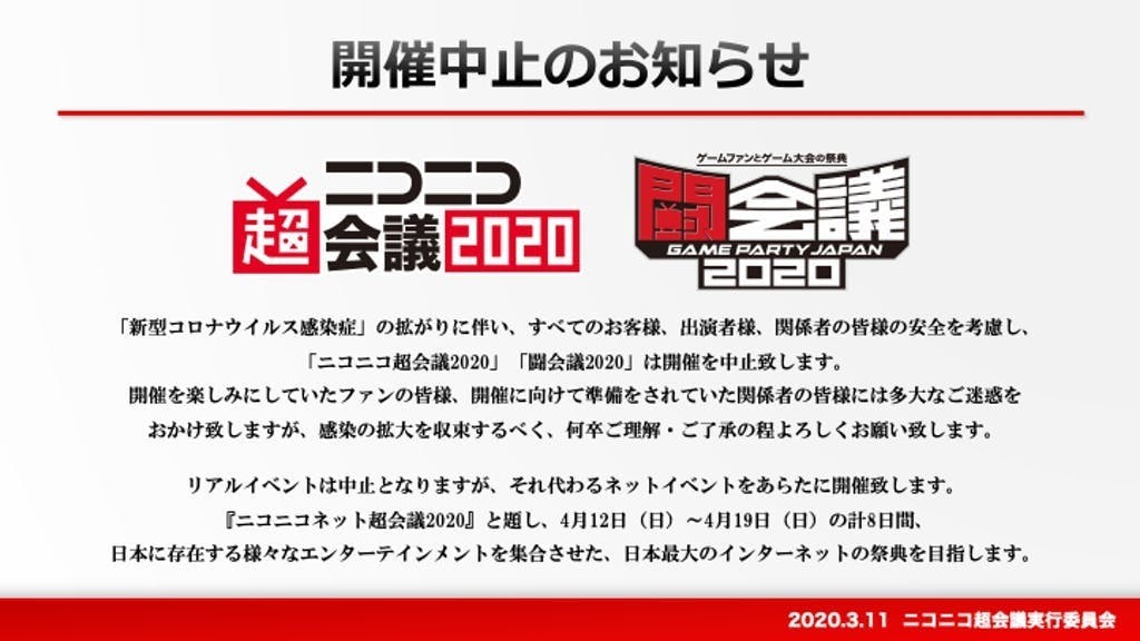 『超会議2020』中止に伴う本プロジェクトの今後の募集について
