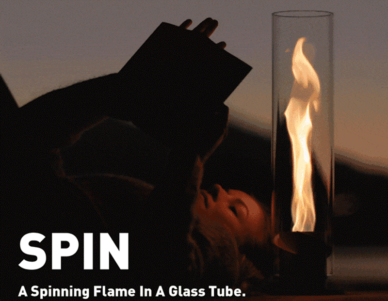 「SPIN」は、装飾的なガラス製シリンダー内で渦を巻く炎が印象的な、屋外で使用可能なアウトドアランタンです。燃料のバイオエタノールは燃やすと水蒸気のみが発生する安全仕様。