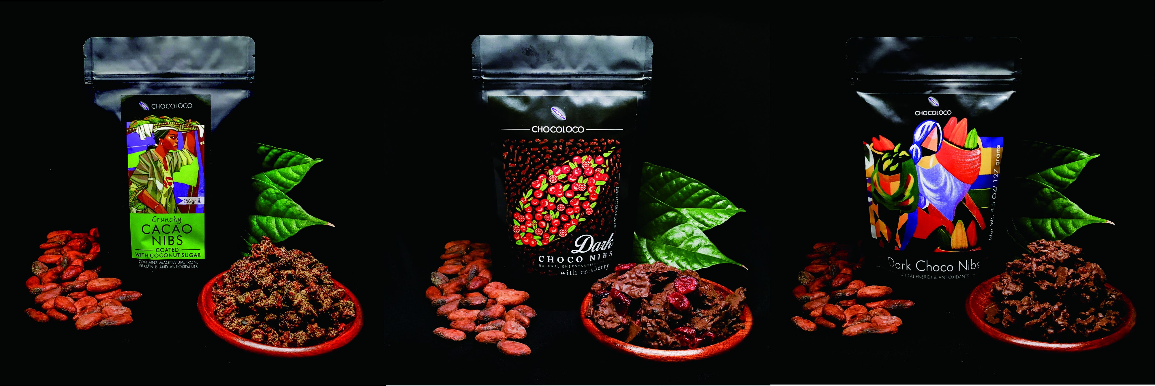 アメリカ、南米、アフリカなど世界のいくつかの地域でカカオは生産されています。そして今注目されているのが「東南アジア」。CHOCOLOCOは、その一つであるフィリピン・ダバオでカカオフードの製造を行なっています。年間を通して温暖な気候で栽培されるカカオは、非常に高品質で香りが際立っているのが特徴です。カカオだけでなく、CHOCOLOCOの商品には地元で生産されている様々な素材が使われています。例えば、クランベリーやココナッツシュガーは、現地で盛んに栽培が行われています。通常、チョコレートの味付けには人工甘味料や食品添加物が使用されることが多いですが、CHOCOLOCOプロダクトは、全ての素材にオーガニックのものを使用し、自然乾燥や栄養価を逃さない加工方法で、素材のポテンシャルを最大限に生かした状態で製品化されています。